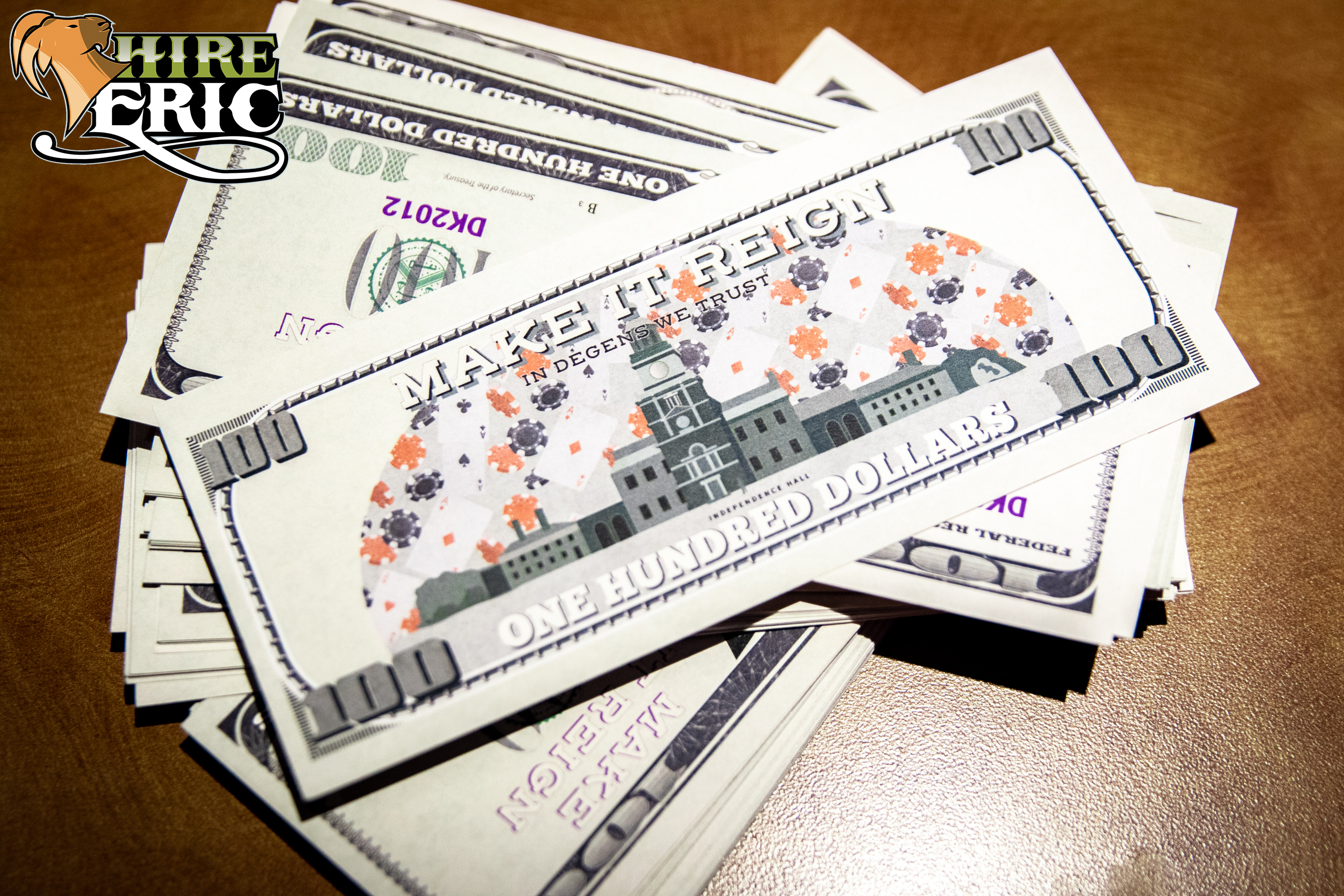 Where do we start on this one? Perhaps with the tongue-in-cheek “in degens we trust” mantra adorning the back of the bill? How about the “DK2012” serial number as a nod to the brand’s founding year? Or maybe the legal tender phrasing?