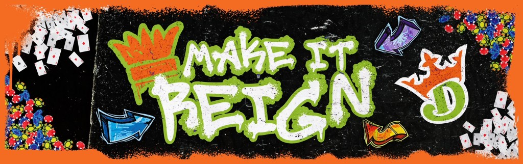 Alright, the money gun’s design is pretty self-explanatory. DK’s branding is in full force with its “Make It Reign” slogan, which of course, ties up nicely to the Reign Maker product name. The phrase is also spelled out in graffiti-like typography that DK has been know to use when using the word “reign” in its marketing efforts. If a grown human-being shooting dolla dolla bills from a makeshift gun wasn’t attention-grabbing enough to onlookers, then the cannon’s heavy use of green, orange, and black should do the trick.
