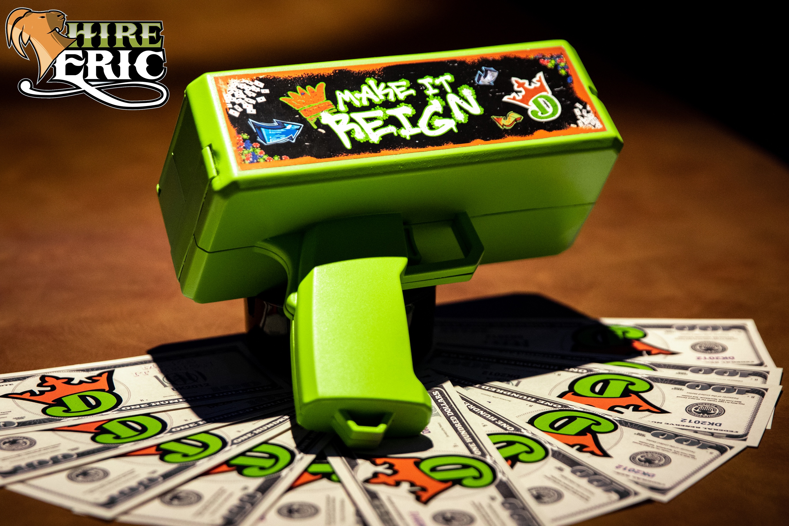 But first, you might be thinking, “what the hecks the Reign Maker anyway?” Welp, it’s a “money gun” that’s branded entirely around DraftKings.